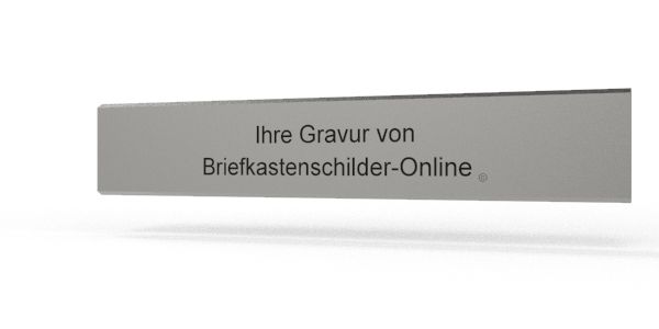 Für Alumhaus Briefkästen finden Sie bei briefkastenschilder-online.ch zwei verschiedene Briefkastenschilder, welche die gleiche Kontur und Form haben, die beiden Briefkastenschilder unterscheiden sich lediglich in der Länge, resp Breite. Das eine Briefkastenshcild ist 110mm breit und das andere 80mm. Das Alumhaus 110x19 Alu Briefkastenschild können Sie direkt mit Gravur auf dieser Seite bestellen, wenn Sie zum anderen Briefkastenschild möchten, klicken Sie einfach der entsprechende Link: >Zum Alumhaus 80x19mm Briefkastenschild<